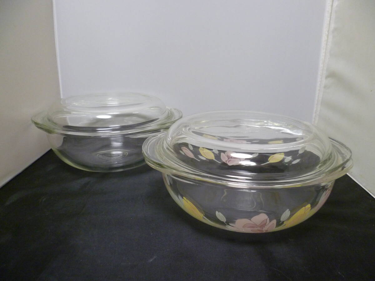 - 調理道具 パイレックス iwaki GLASS キャセロール 電子レンジ・オーブン用 2種類 2ヶ(中古品)