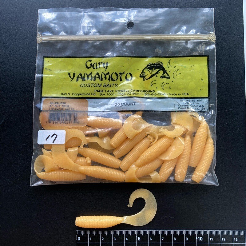 > 814513 ゲーリーヤマモト 4インチ シングルテールグラブ 17本 GARY YAMAMOTO #038 ルミナスホワイトいい感じにヤケてます要確認ください