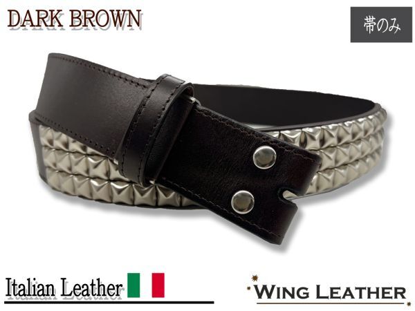 > 新品 イタリアンレザー ベルト カジュアルスタッズ 帯のみ バックル無し 本革 レザー メンズ パンク ロック V系 ダークブラウン GTC028DB