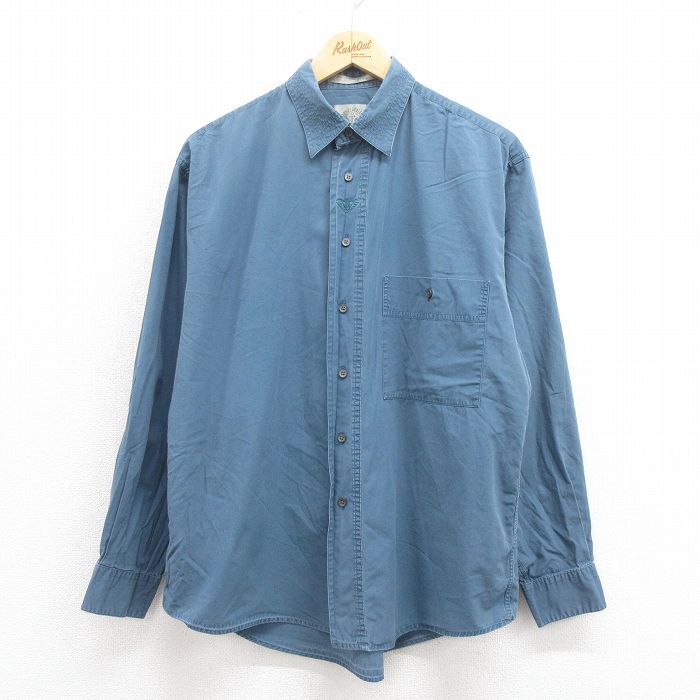 - L/古着 ドッカーズ 長袖 ブランド シャツ メンズ 90s ワンポイントロゴ コットン 紺 ネイビー 25aug19 中古 トップス