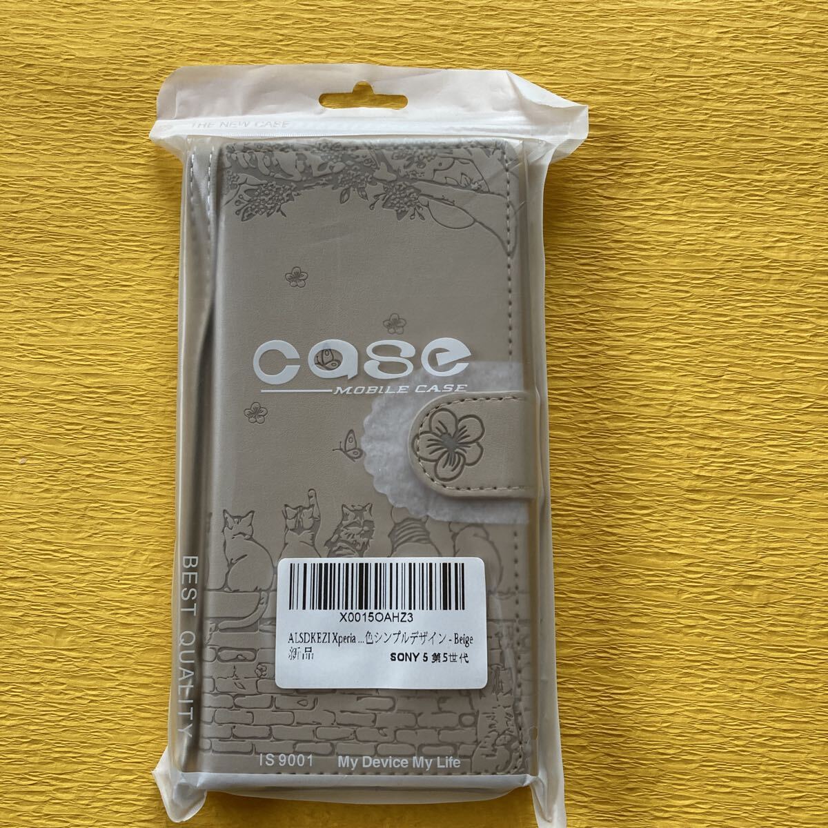 > n6187 Xperia 5 SONY 手帳型スマホケース 猫柄 ベージュ 未使用
