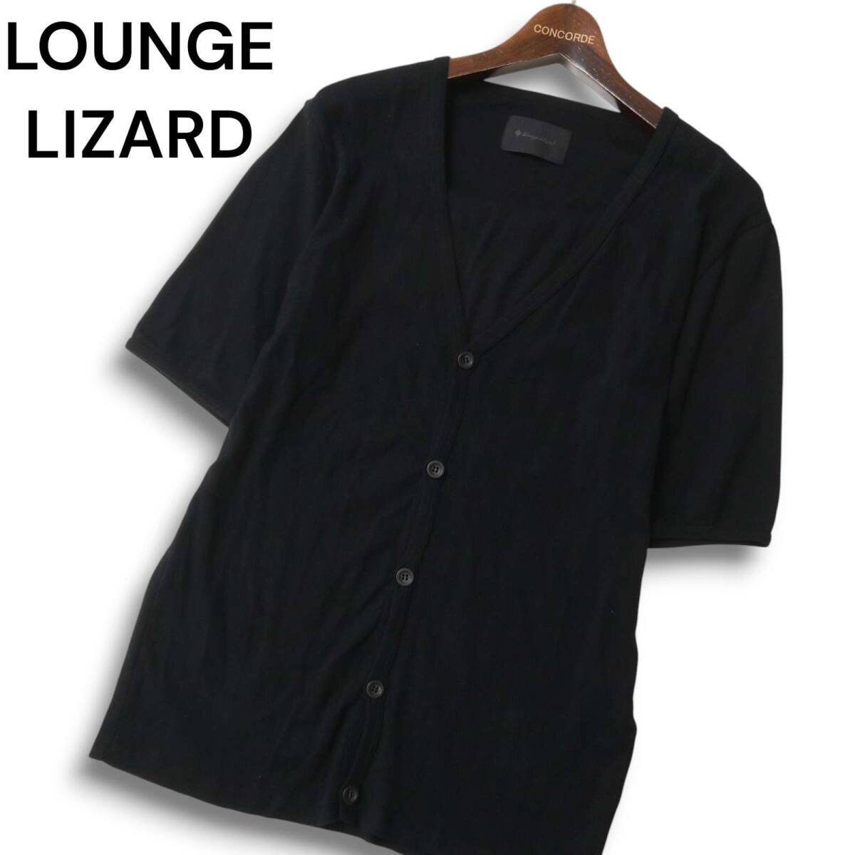 - LOUNGE LIZARD ラウンジリザード 春夏 麻 リネン混★ 半袖 カーディガン Sz.3 メンズ ネイビー 日本製