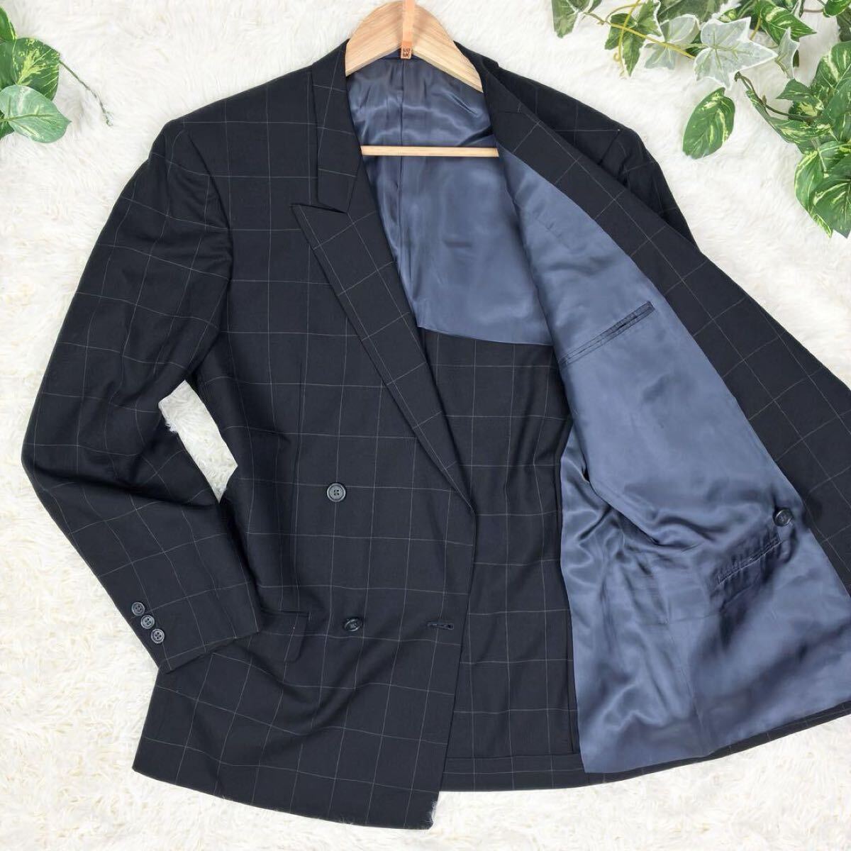 > 美品 Paul Smith ポールスミス ダブルテーラードジャケット ウィンドウペンチェック L 紺 日本製
