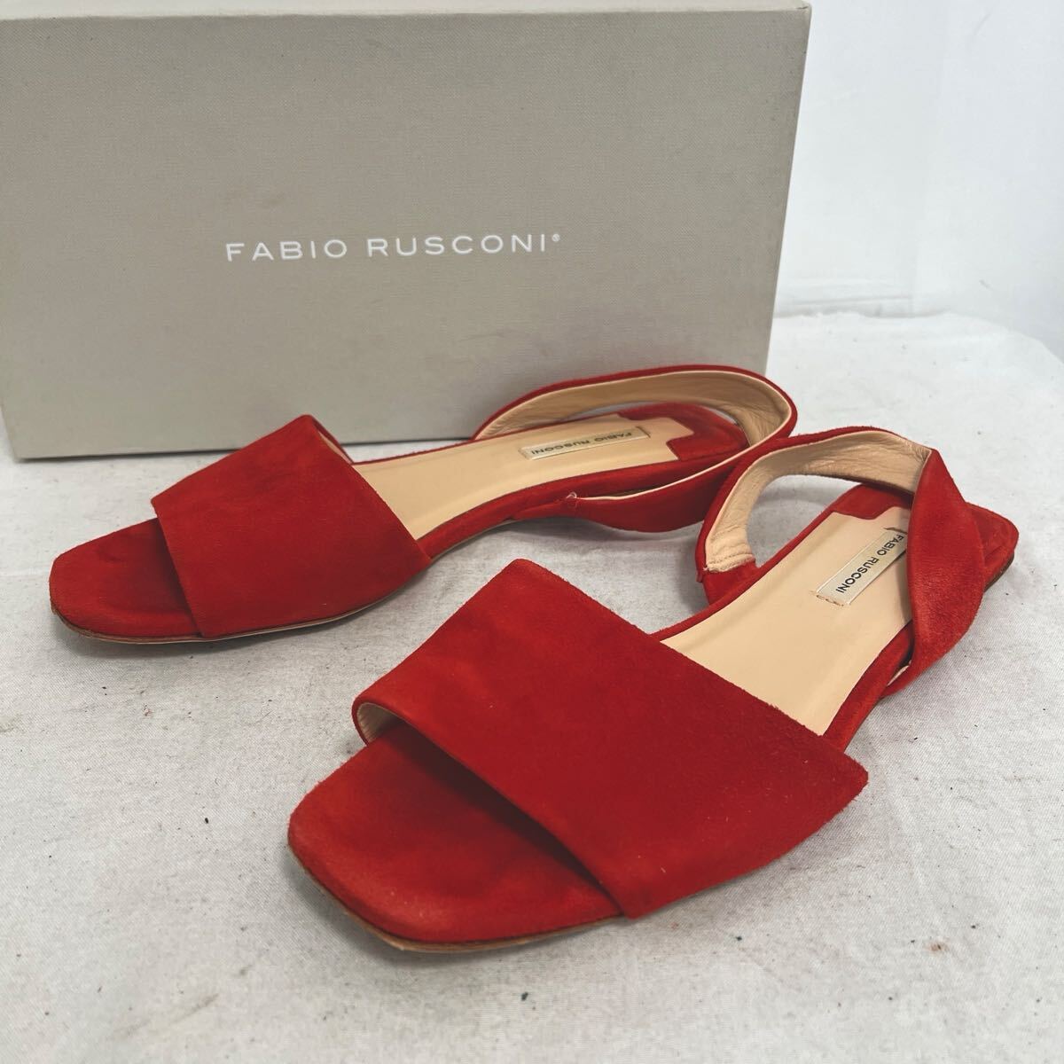 > 和825★ 箱付き FABIO RUSCONI ファビオルスコーニ サンダル ストラップ スエードレザー 38 レッド レディース