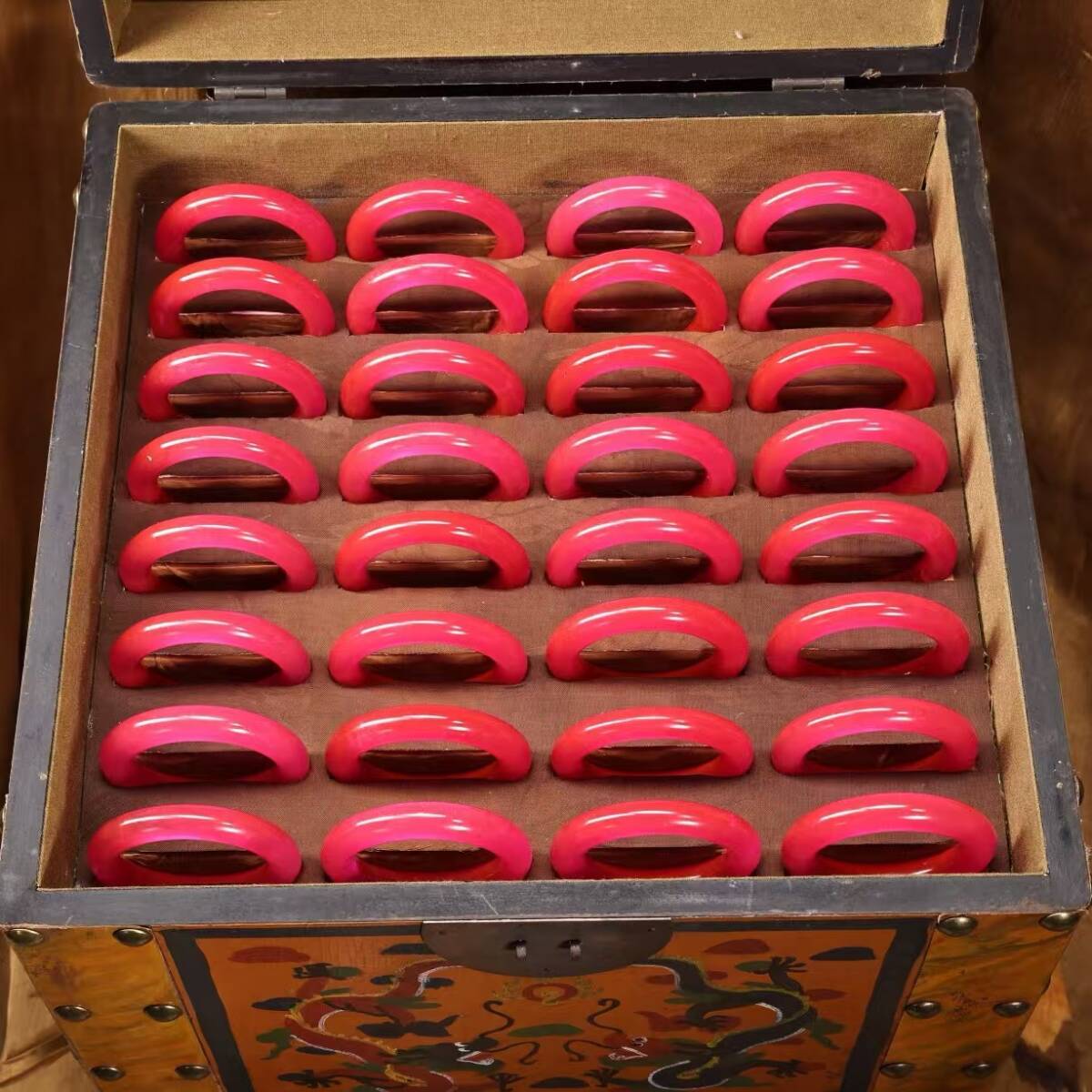 - 清代・老玉 秘藏 乾清宮蔵氷種ピンク芙蓉玉ブレスレット1箱 唐物 古玉彫 天然石 稀少珍品 古美術 古賞物 古置物 旧蔵 8.16