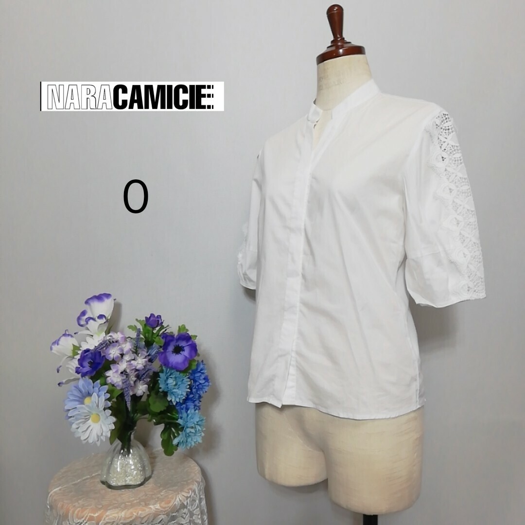 - 極上美品 ナラカミーチェ レース 五分袖ブラウス Sサイズ ホワイト色系