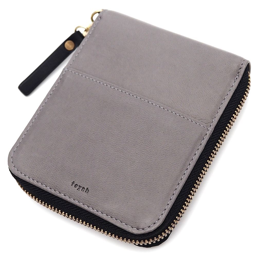 - H0618S 未使用品 texnh/FOLD WALLET ラウンド レザーウォレット 財布 グレー 定価35200円 テクネ メンズ