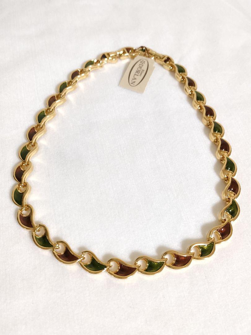- 新品タグ付き D'ORLAN ドーラン ネックレス ゴールド x グリーン × ブラウン エナメル