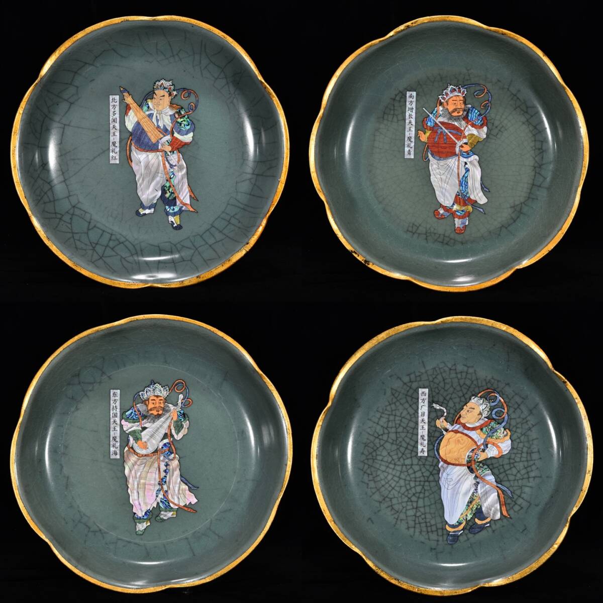 > 8+GV7334「東洋美術」 中国骨董 人間国宝 磁器製品【如窯螺鈿文花口皿四天王】 旧物 孤品 珍品 陶磁器 収蔵価値が高い