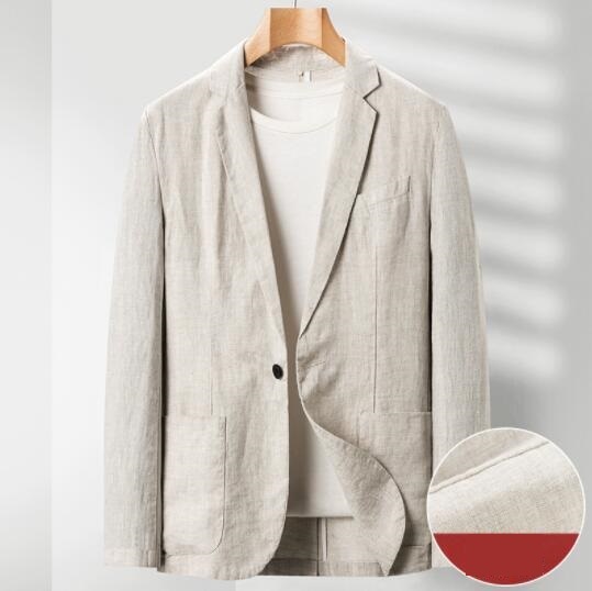 - 大人気春夏秋 テーラードジャケット 麻100% メンズ 無地 通気性 リネンジャケット ブレザー 薄手 スーツ 紳士服 アウター ベージュ L