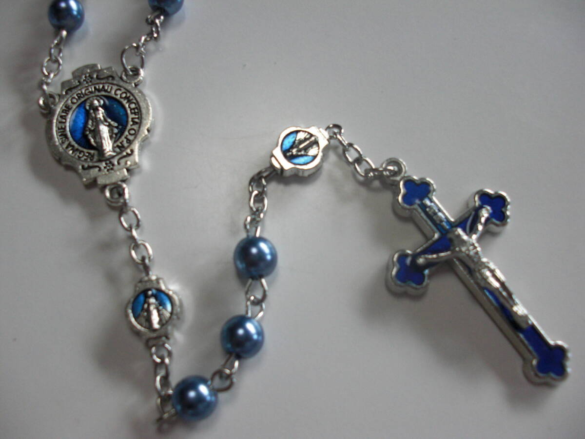 - ブルーメッキ合金6mmビーズ・ビンテージで優雅なデザインを施したロザリオ・キリスト十字架・チカーノ・ローライダー・ギャングスタ