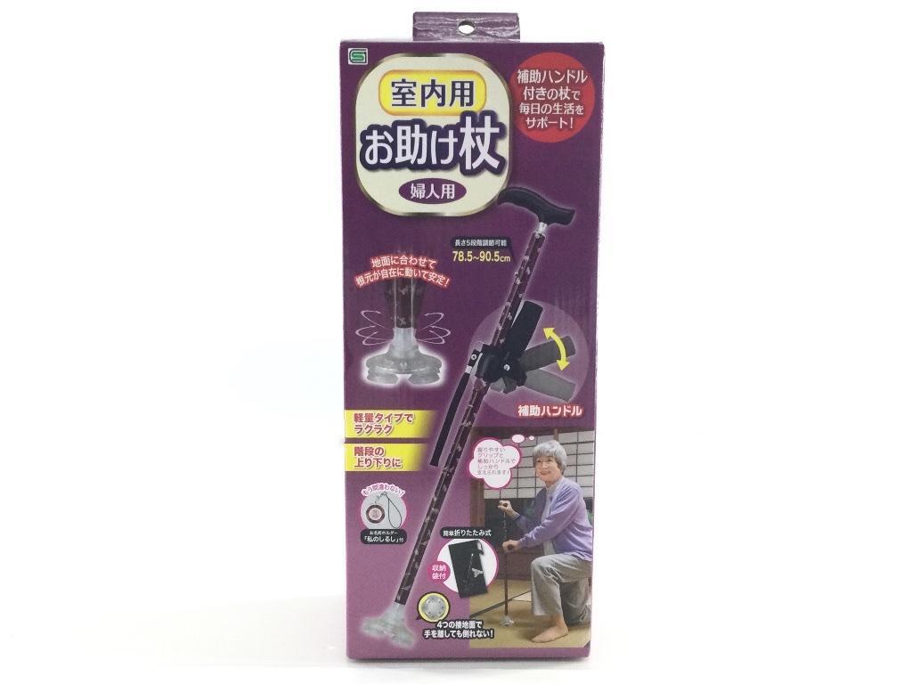 - お助け杖 室内用 婦人用 補助ハンドル付き 身長148~174cmまで ネコ柄 パープル