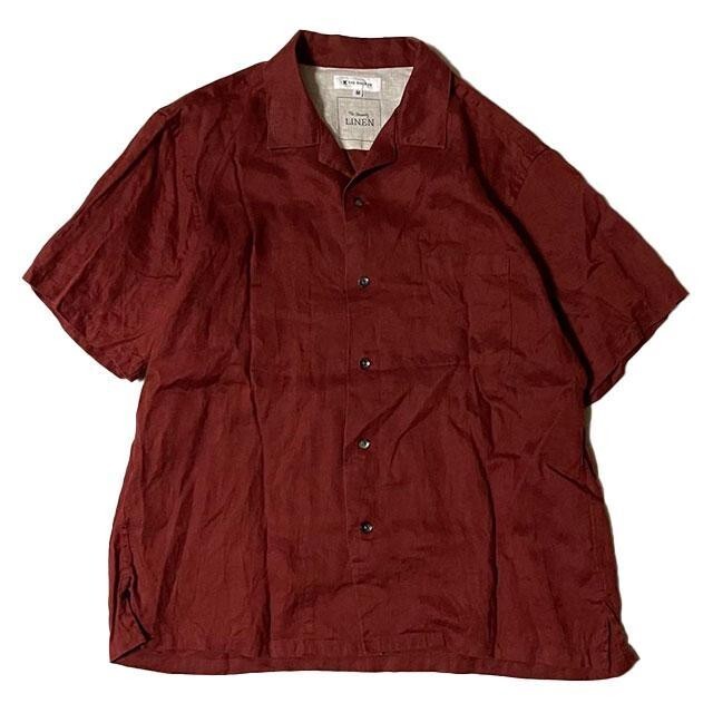 > タケオキクチ[SHOP TK] 仏・ノルマンディーリネン開襟シャツ M バーガンディ 美品 麻100% E049