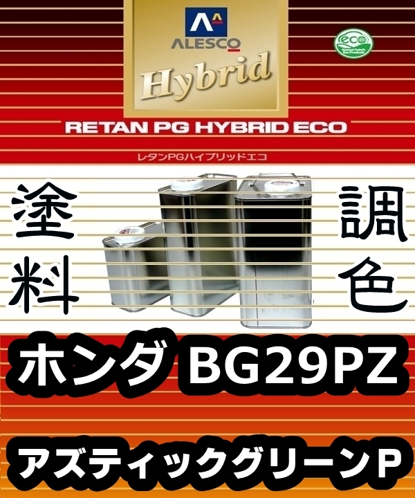 > ●レタンPGハイブリッドエコ 調色塗料【 ホンダ BG29PZ/BG29P・Z :アズティックグリーンP:希釈済500g 】関ペ 1液ベースコート/PGHB