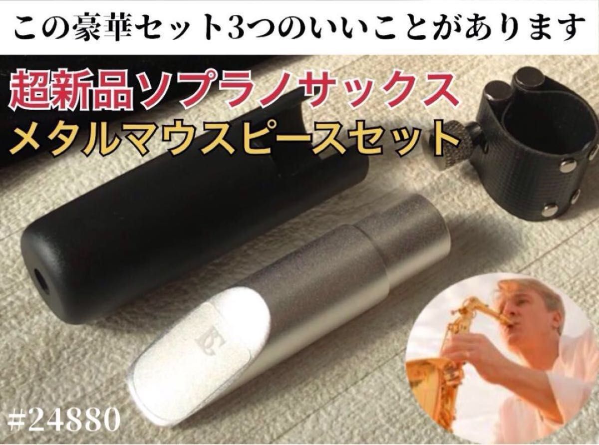 - 【豪華セット】5番ソプラノサックス メタルマウスピース シルバー おまけ有
