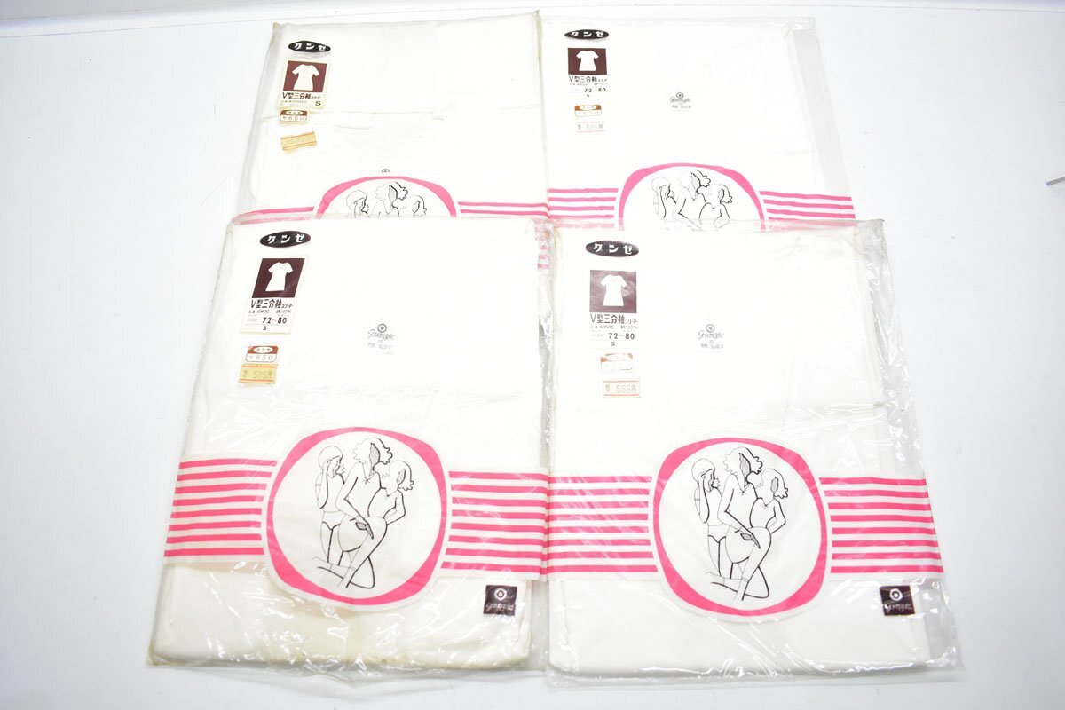 未使用 未開封 グンゼ 女性用 V型 三分袖スリーマー Sサイズ 4点まとめて [GUNZE][肌着][下着][白]