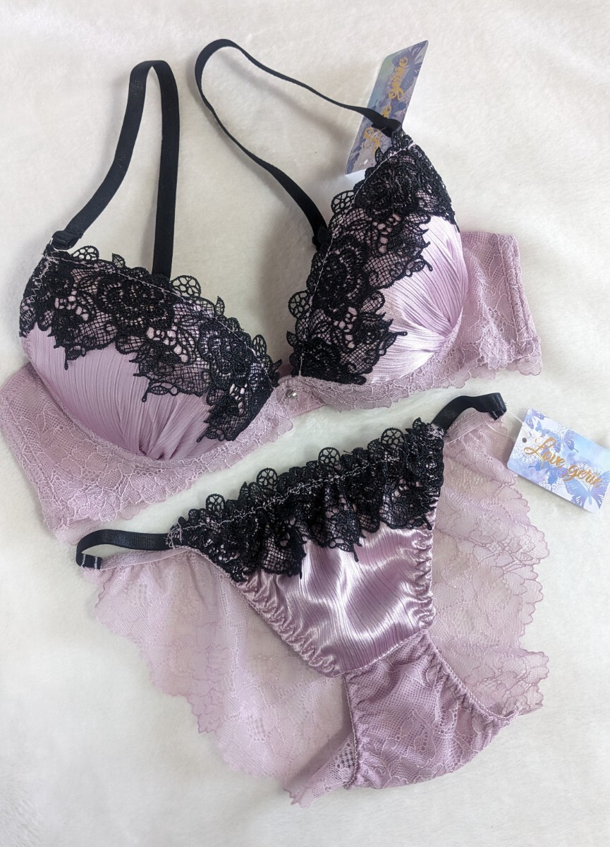 > お泊まりに☆C70ブラ&パンティ☆上下お揃い☆未使用☆セクシーサイドストリング&ブラックレース☆光沢ピンク☆匿名配送可☆