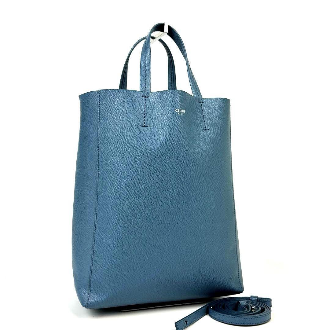- 【美品】CELINE セリーヌ トートバッグ 2way バーティカルカバ 肩掛け ショルダーバッグ サフィアーノ レザー 水色 フォーマル 男女兼用