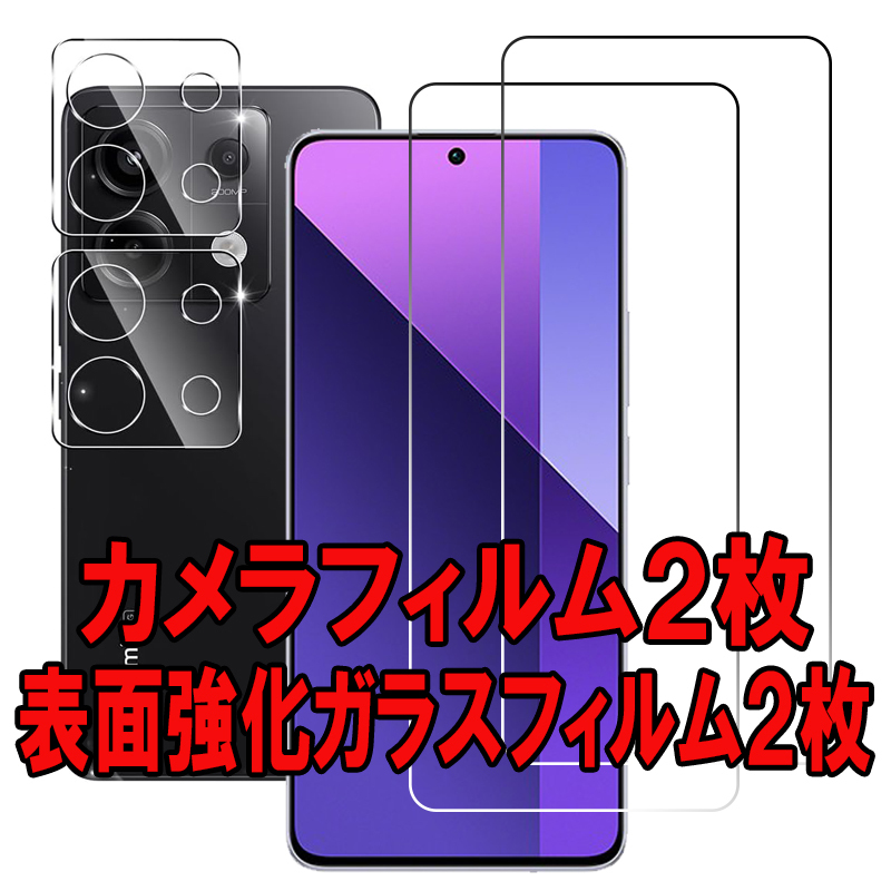- 2セット=4枚 Redmi Note 13 Pro 5G カメラ ガラス フィルム 画面 保護 XIG05 レッドミ カバー 頑丈 シール シート Camera Glass Film