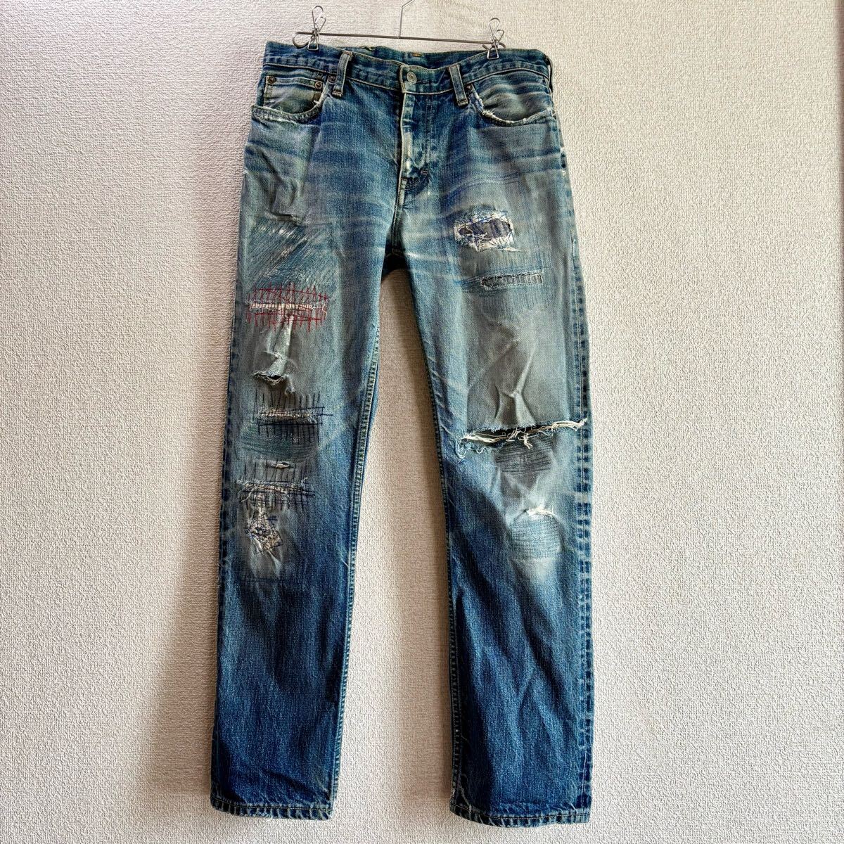 > 【雰囲気抜群】 RRL ダブルアールエル セルビッジデニムパンツ 実寸W31.5L29.5 鬼リペア加工 ローライズスリムフィット 革パッチ ジーンズ
