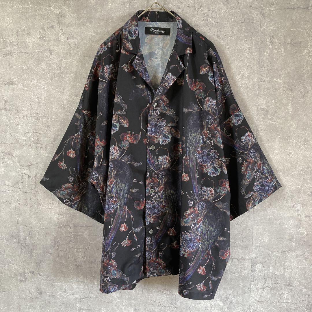 - Unrelaxing 開襟シャツ オーバーサイズ ルーズシルエット 花柄オウム柄