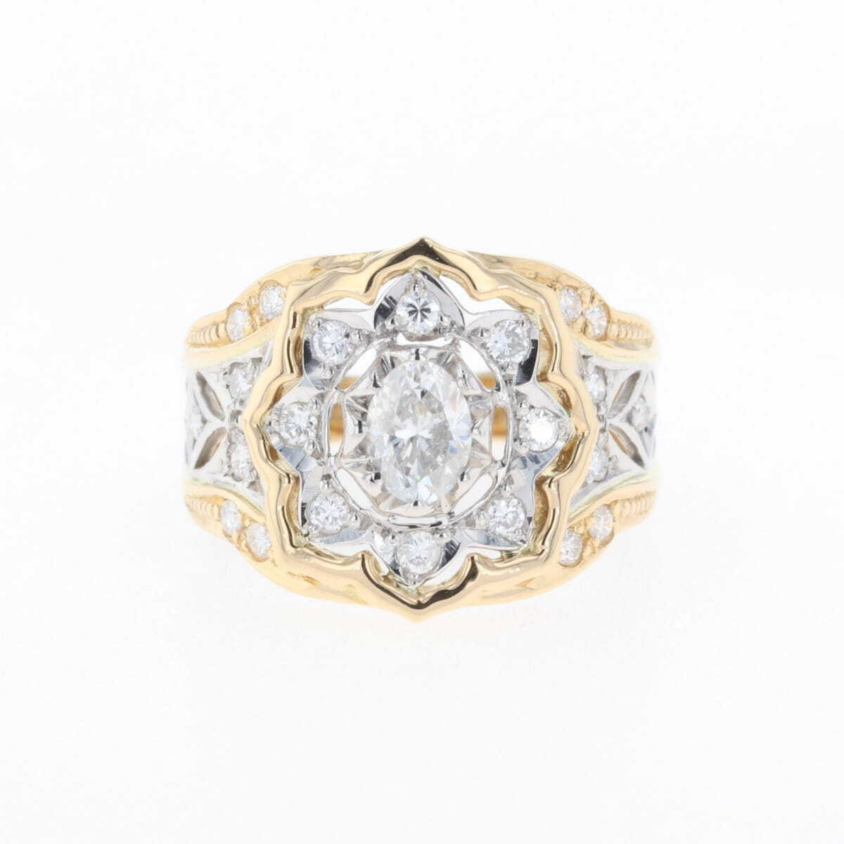 > ダイヤモンド デザインリング プラチナ YG イエローゴールド 指輪 メレダイヤ リング 10.5号 Pt900 K18 ダイヤモンド レディース 【中古】