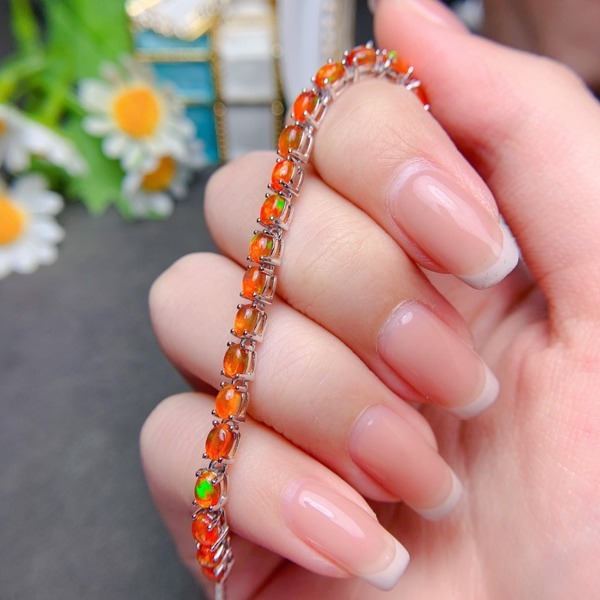 > ナチュラルオレンジオパールブレスレット、3x4mm、鑑別付き、残り時間4日までに最初に入札すると開始価格で購入可能 Yu