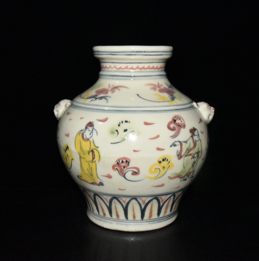 - 【超珍館蔵】唐 古陶瓷品 五彩 人物故事紋 虎頭罐 陶藝 古賞物 古董品 古美術品 時代物 旧家蔵出 稀少珍蔵品