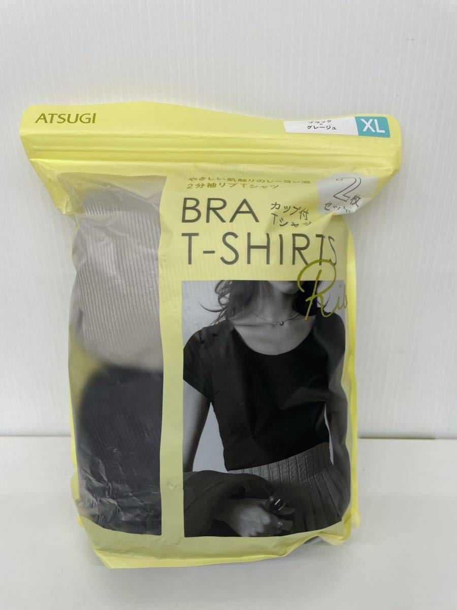 - ATSUGI リブ 2分袖リブTシャツ カップ付き XL 2枚 グレージュ ブラック やさしいレーヨン素材