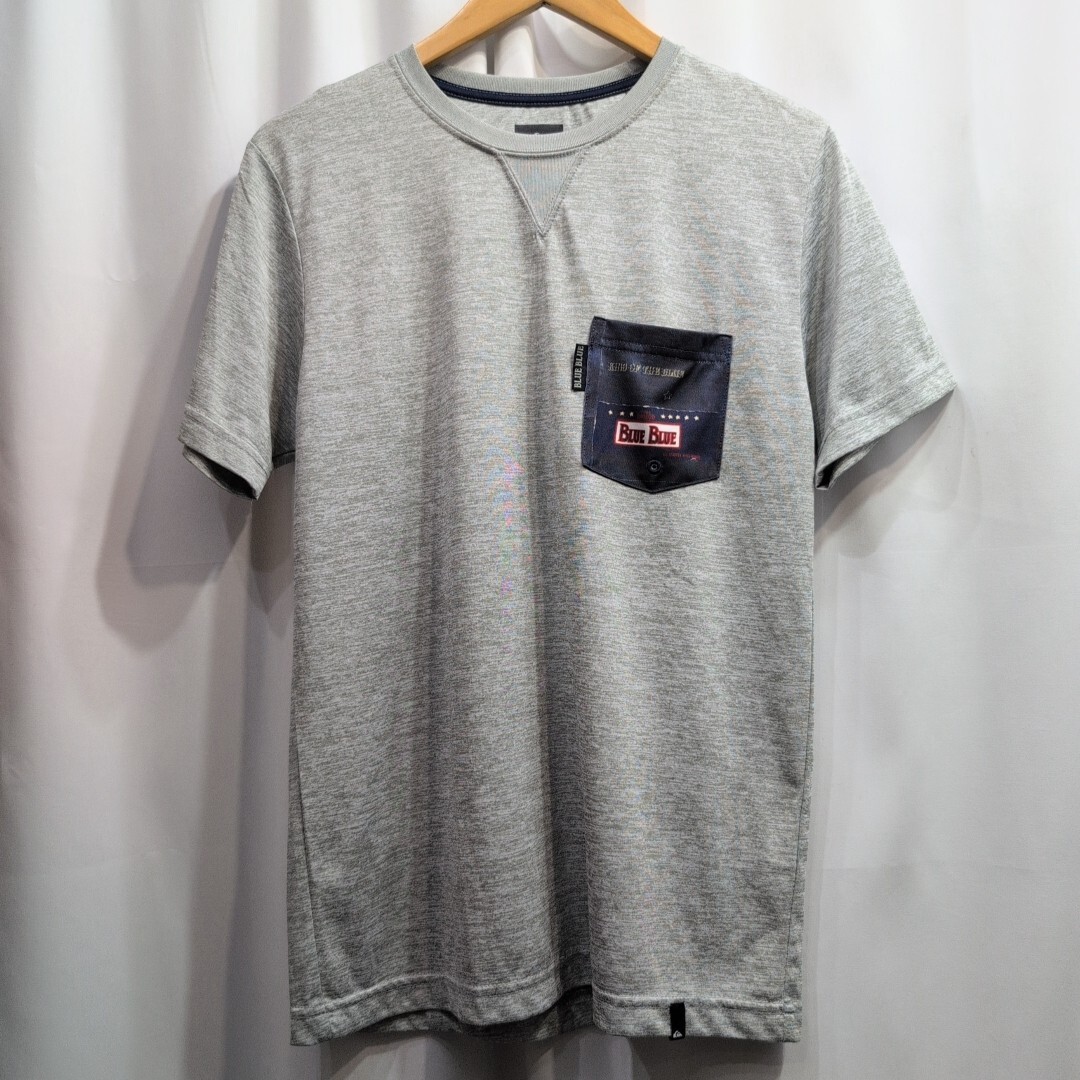 > 極美品 別注 BLUE BLUE×QUIKSILVER ブルーブルー×クイックシルバー 速乾素材 ドライ 半袖Tシャツ S ロゴ転写 胸ポケット/キャピタル/児島