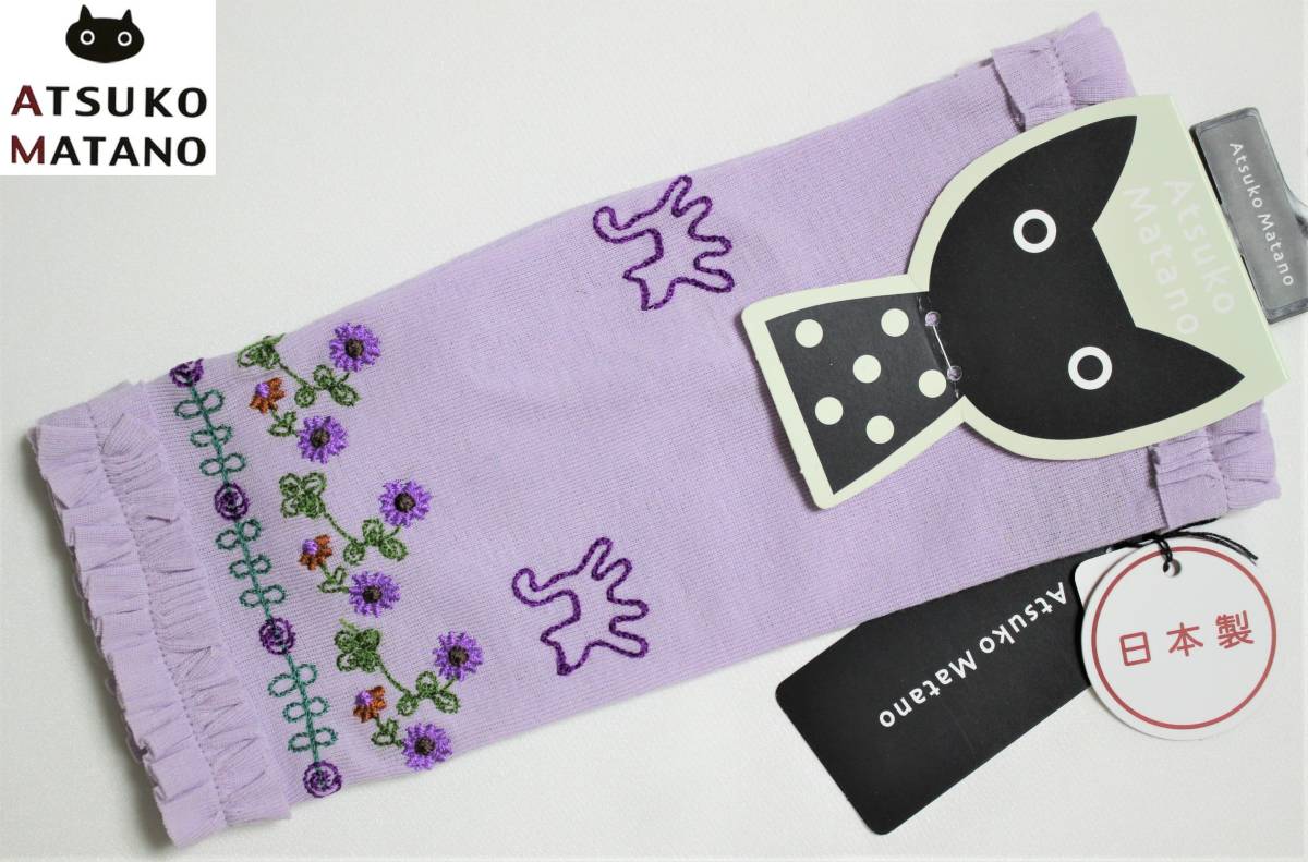 > AM-8 新品本物即決 UV手袋 マタノアツコ 俣野温子 Atsuko Matano 日本製 紫外線対策 レディス フィンガーレスグローブ 猫花刺繍