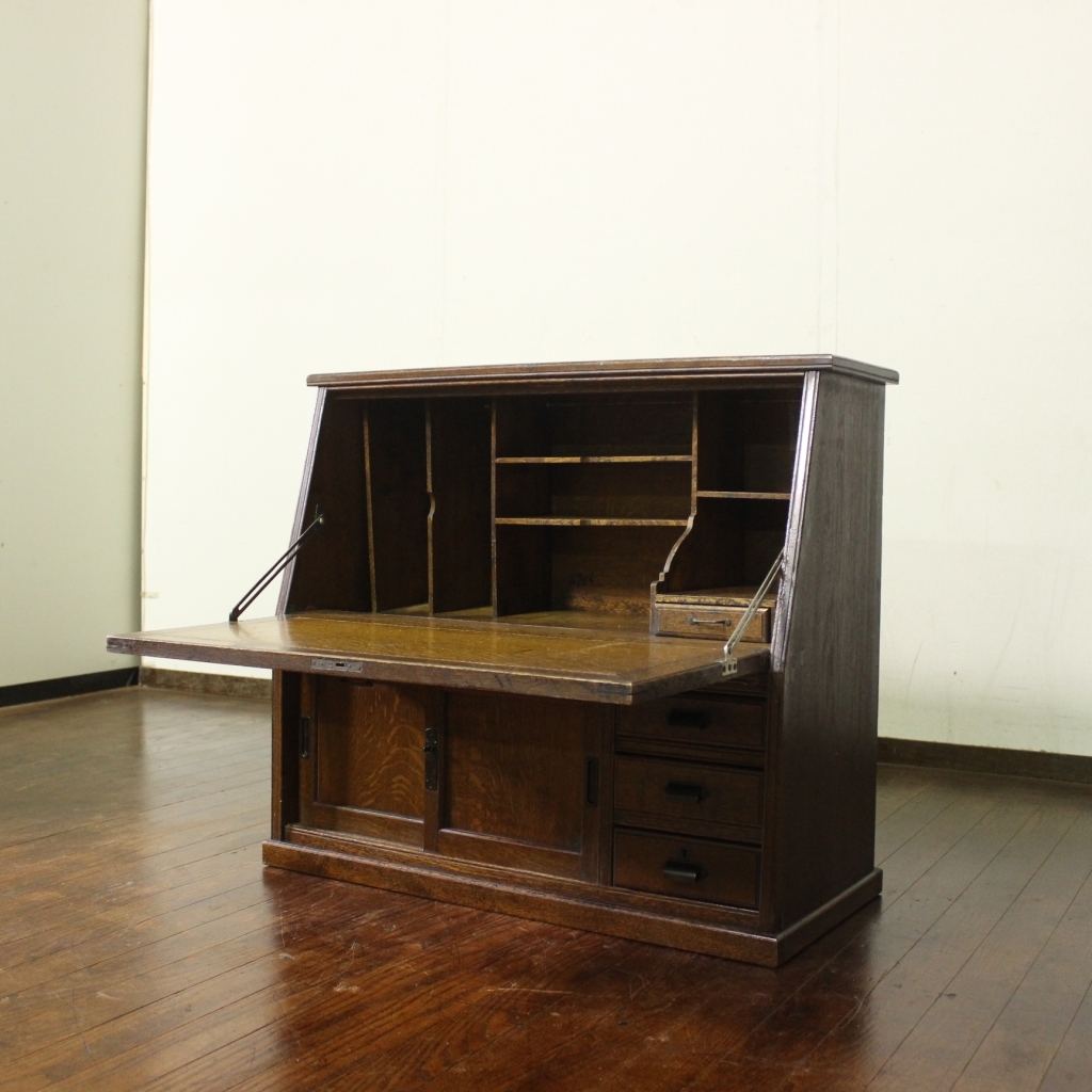- アンティーク・レトロ 古い木製ライティングデスク 帳場机本棚テーブル作業台昭和レトロ座机和家具日本家屋古家具古道具