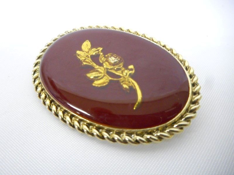 - ブローチ オーバル フラワー ボルドー×ゴールド M-078