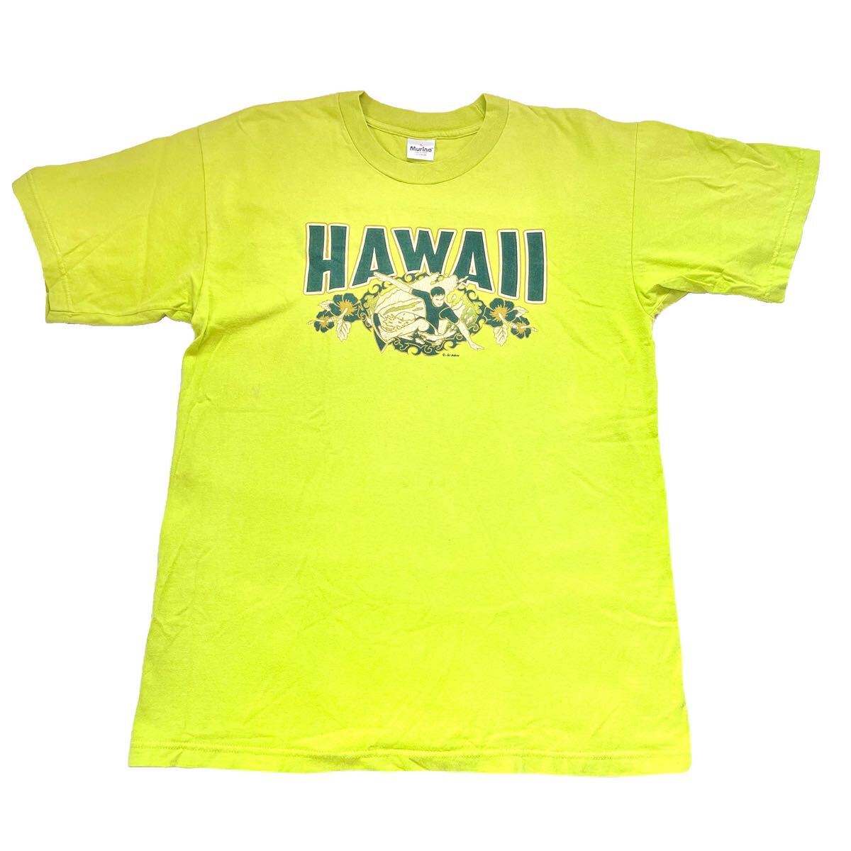 - Murina 半袖 Tシャツ プリント サーファー ハワイ ハイビスカス ライトグリーン 黄緑 L USA製 アメリカ製 綿 100% 大きめサイズ メンズ
