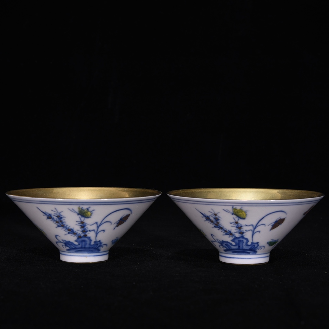 > 旧蔵 明 成化年製 塗金赤胎 闘彩三秋笠杯 陶芸 古陶磁器 中国磁器 極細工 中国古玩 骨董品 古美味 208