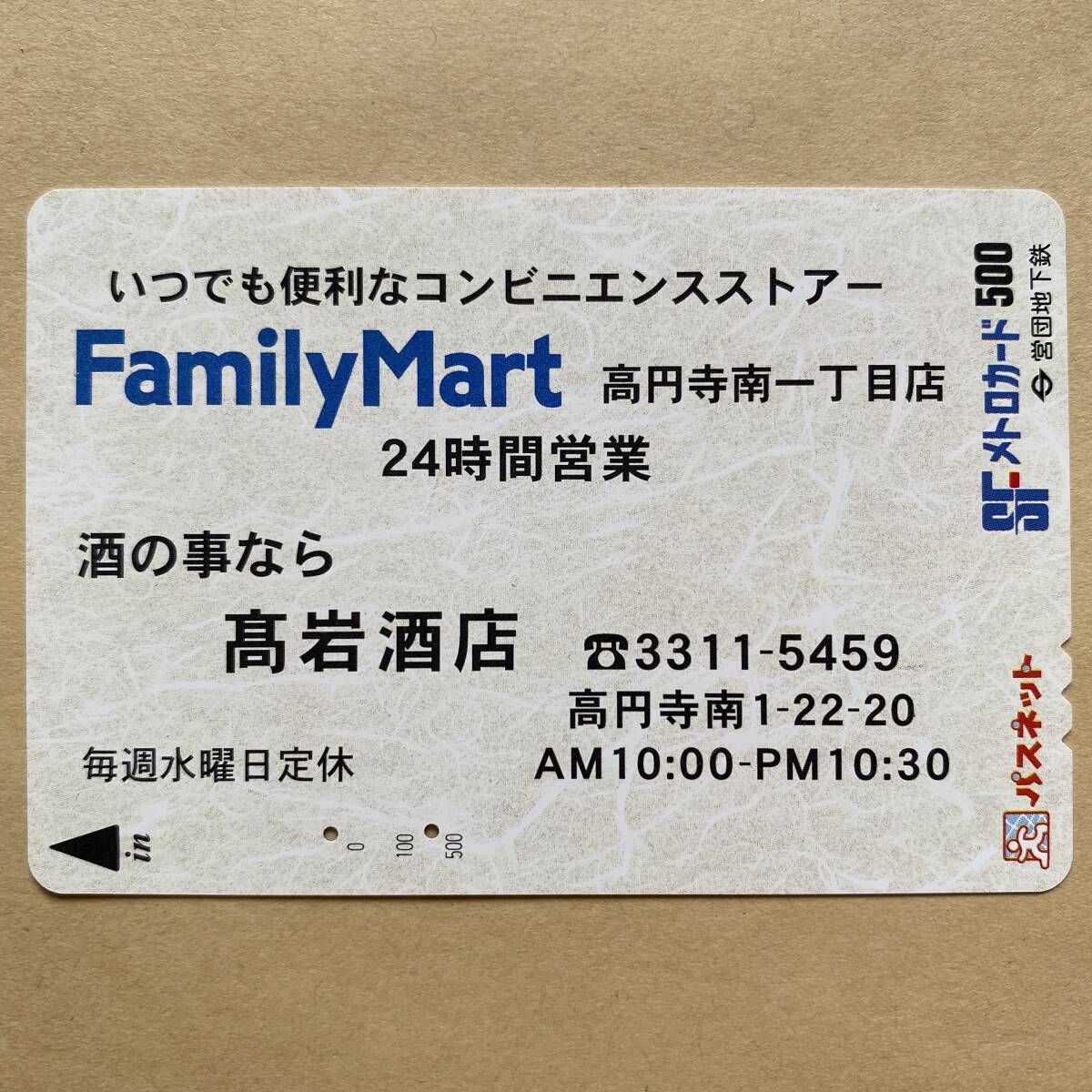 > 【使用済】 パスネット 営団地下鉄 東京メトロ FamilyMart 高円寺南一丁目店 酒の事なら 高岩酒店