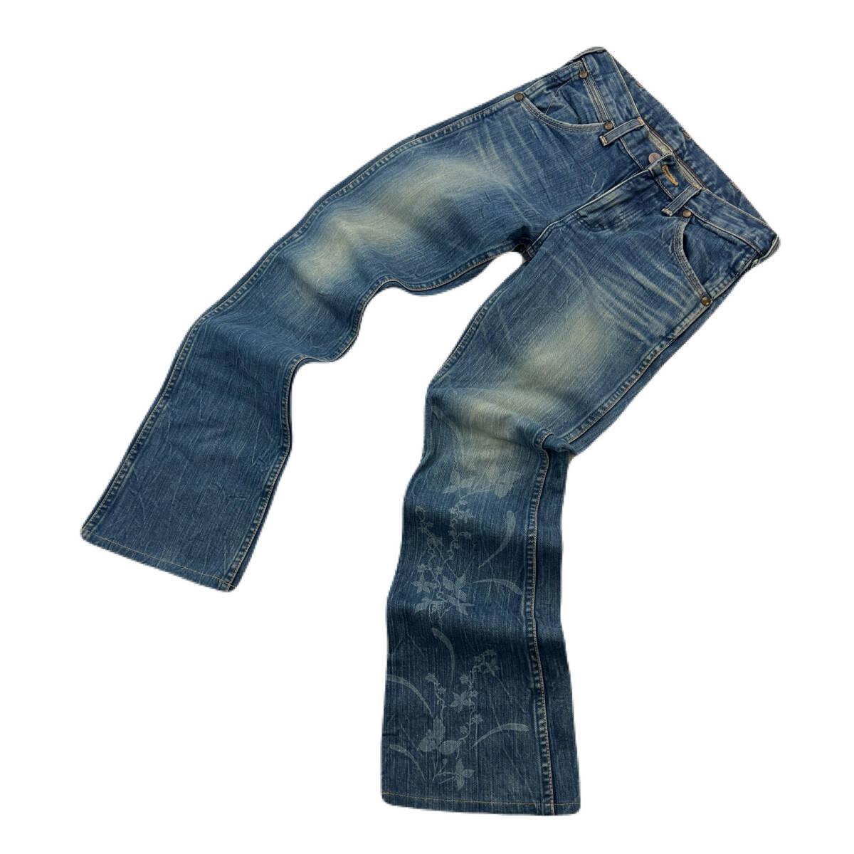 - ラングラー デニム ジーンズ レディース W27 花柄デザイン ブーツカット スリム 【 女性らしい♪ 】 WRANGLER ●Ja8912