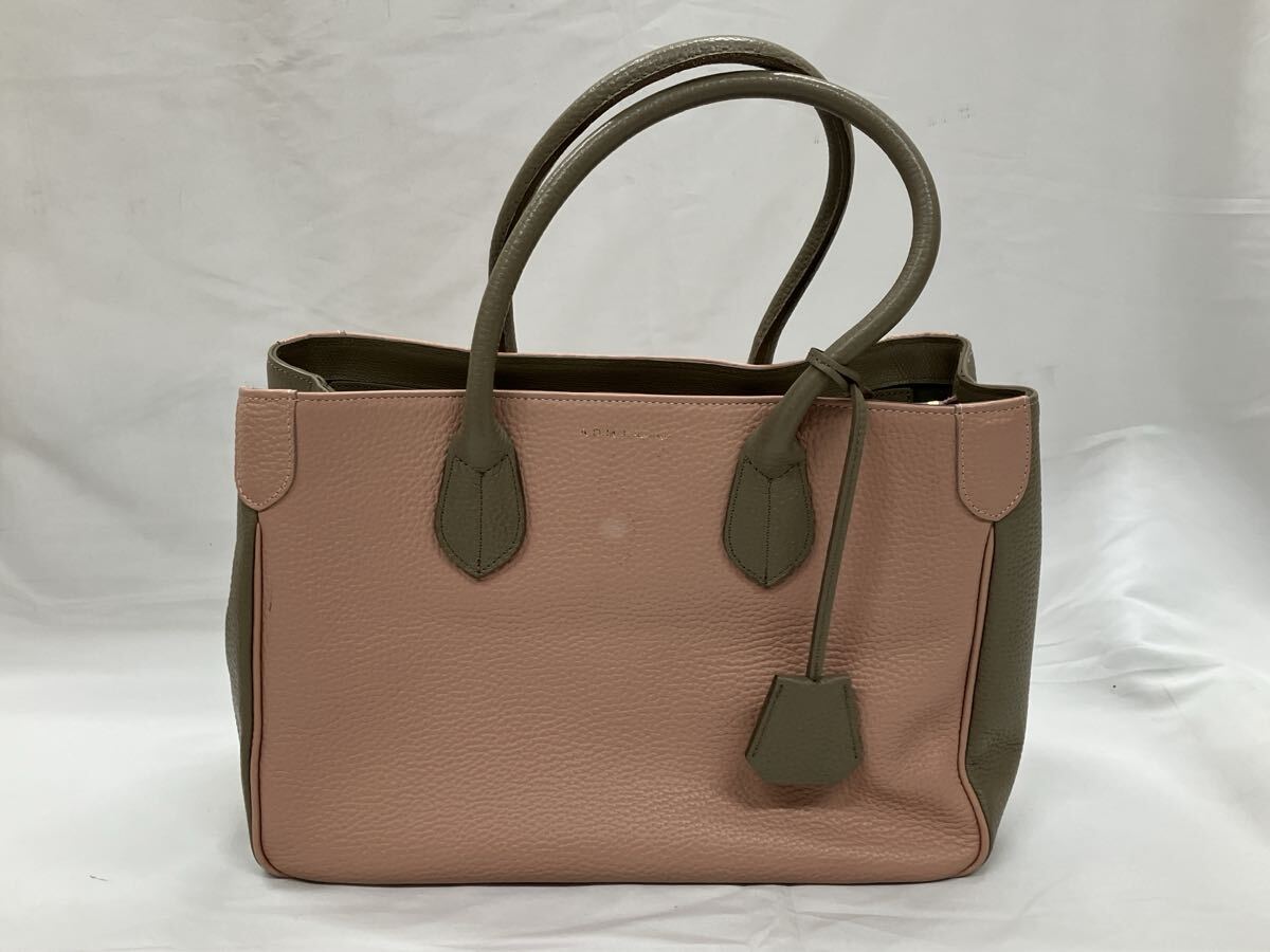 - (Y617)A.D.M.J エーディーエムジェイ レザー トートバッグ ハンドバッグ ピンク×グレージュ