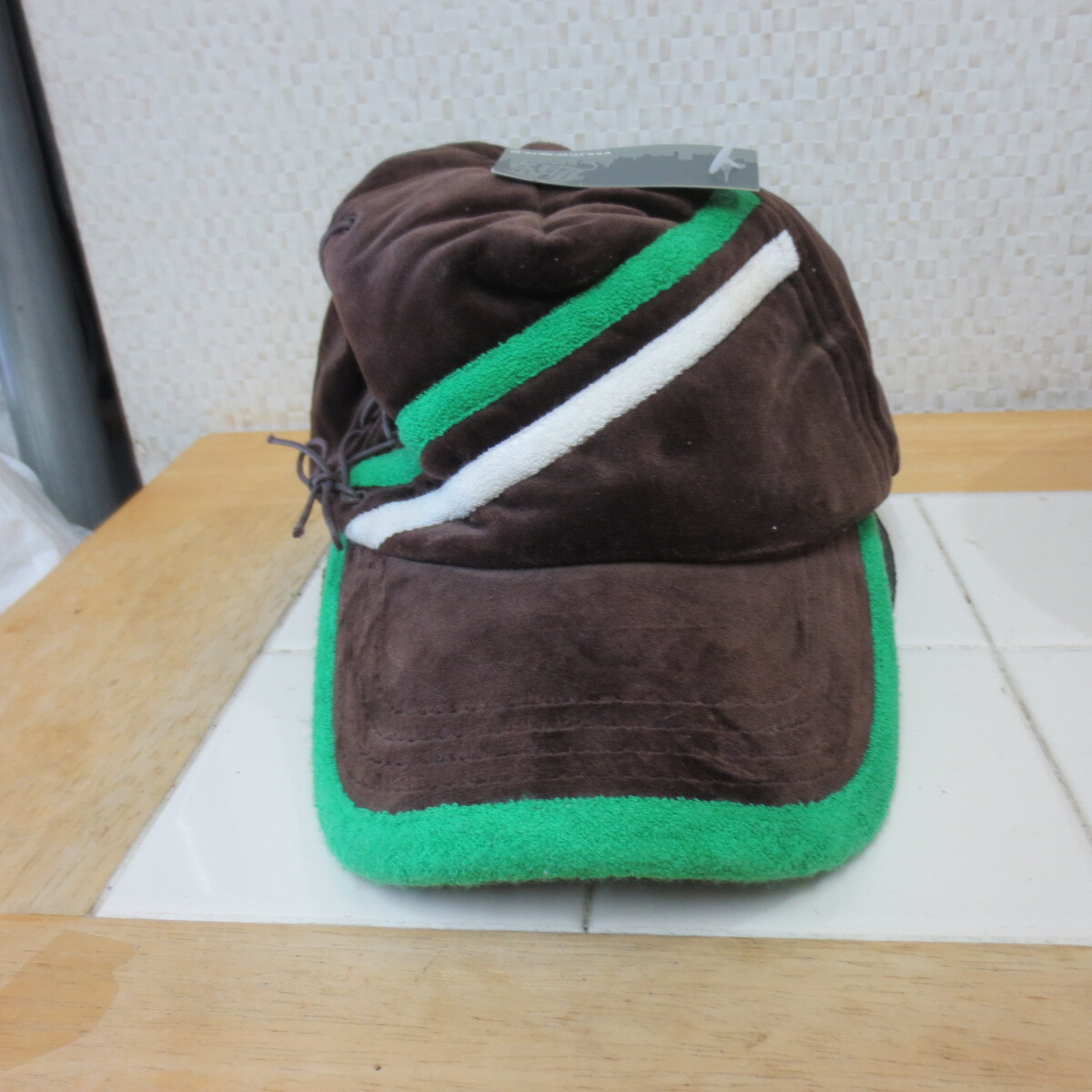 - Bombtrax ボムトラックス キャップ 茶緑白 フリー 新品 ベルト本革 ベロア生地 8・26