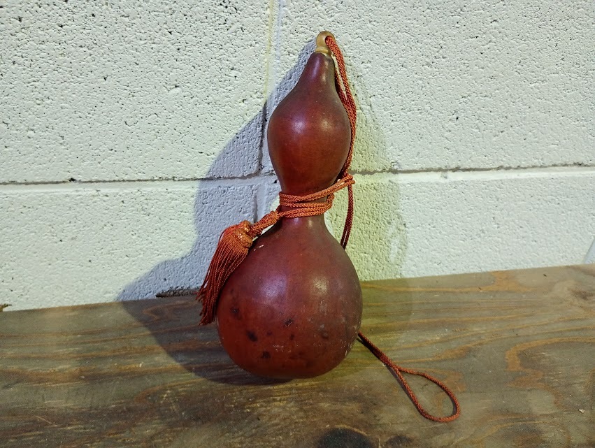 - ♪ひょうたんの水筒/ 当時物 古瓢箪 昭和レトロ 酒器 装飾品 末広がり 縁起物 魔除け 花器 一輪挿し オブジェ