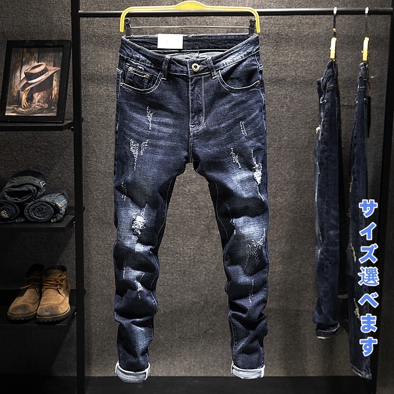 > デニムパンツ ジーンズ ジーパン スキニーパンツ メンズ*新品 バイクジーンズ 微ストレッチ ボトムス【DC-L820】ダークブルー W31