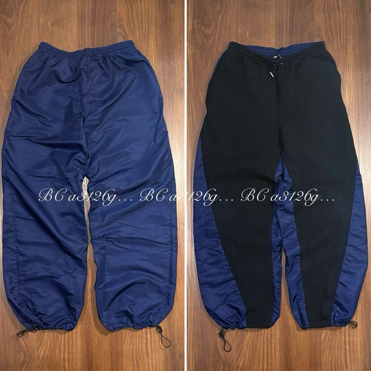 - ZARA ドローコード付き ワイドパンツ Lサイズ NAVY 切り替え メンズ ザラ パンツ ボトムス バイカラーデザイン 太め