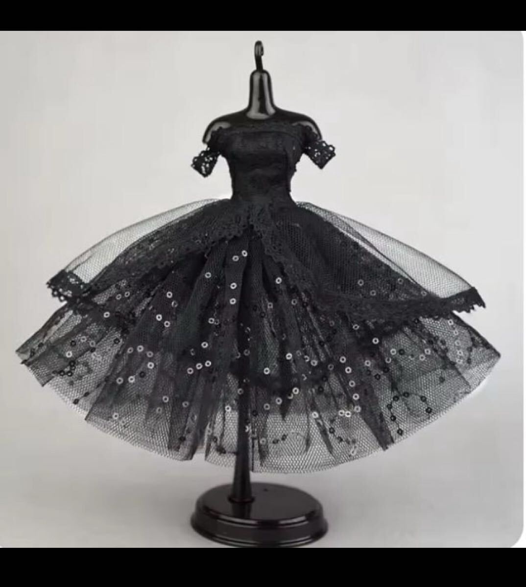 - ブラックの可愛く豪華なショートドレスバービーちゃん・リカちゃん・お人形さん用