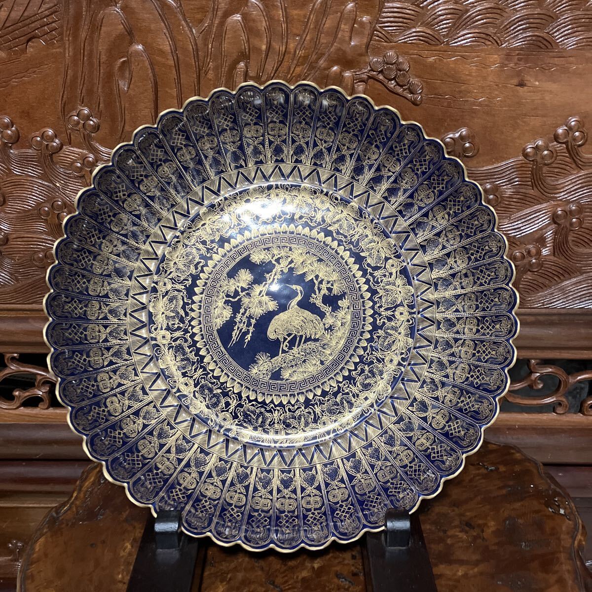 - 【澄今堂】中国美術 唐物 滿工 極上 大清乾隆年製在銘 藍地金彩大皿 古美術 旧家蔵出 時代物
