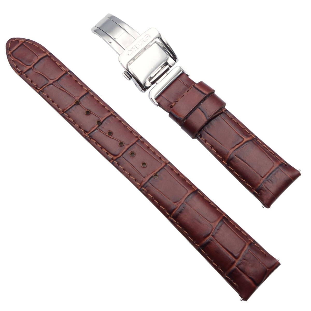 - 20mm セイコー ベルト バックル付き RS05C20BN カーフ 牛革 ワニタケフ型押 茶(ブラウン) スマートチェンジ 新品未使用 送料無料