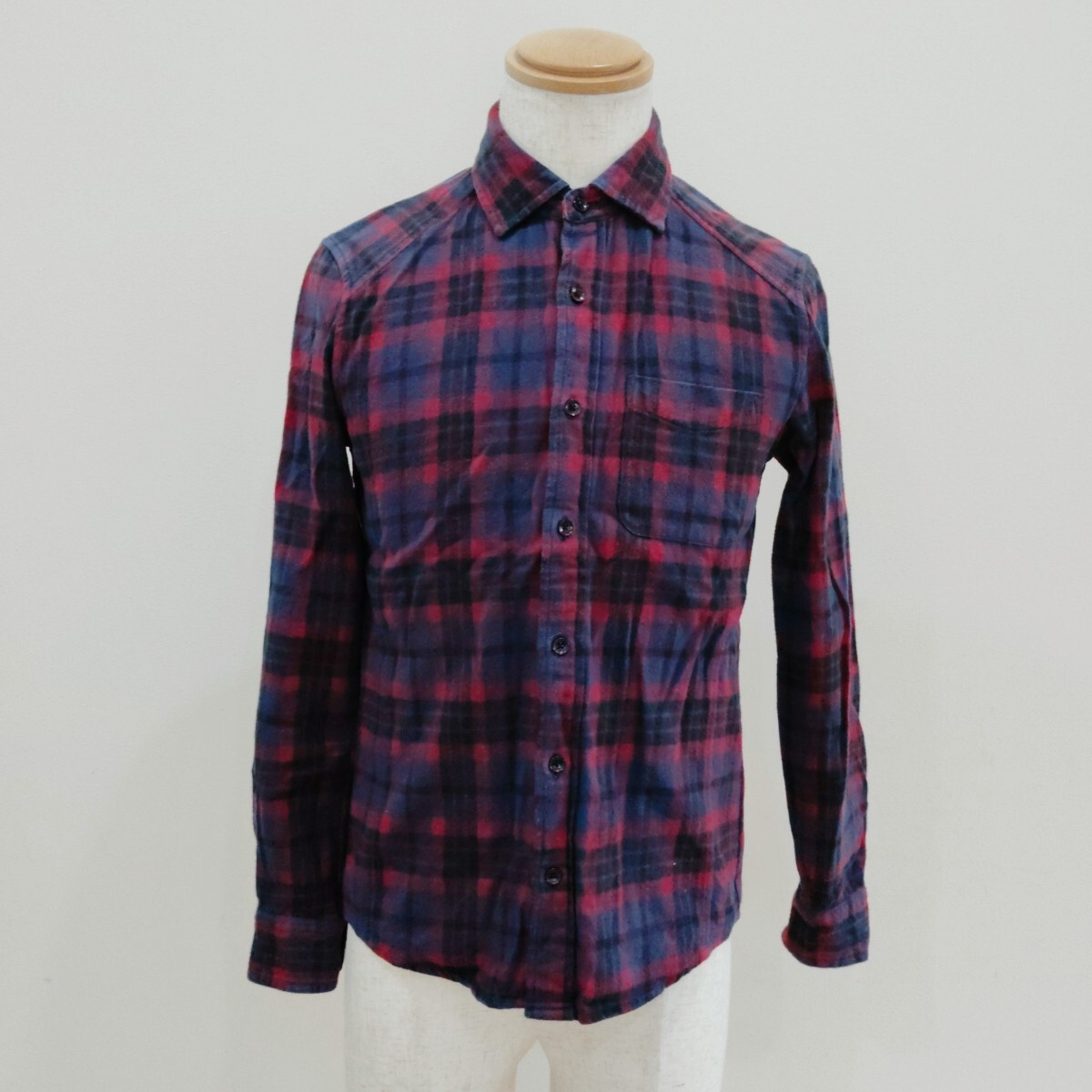 - HAMNETT チェックシャツ 長袖シャツ Мサイズ 綿100% 赤 青 メンズ 服