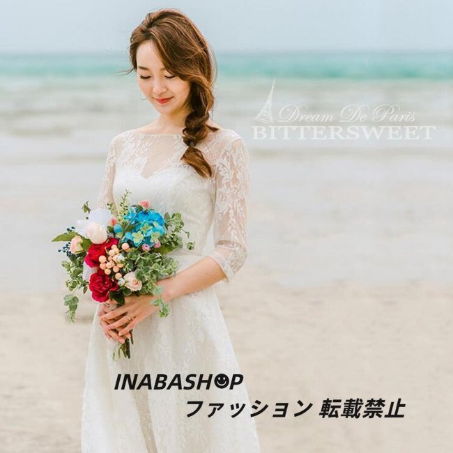 > ウェディングドレス ミモレ丈 ウエディングドレス パーティードレス Aライン レディースドレス 前撮り 後撮り 披露宴結婚式 海外挙式ドレス