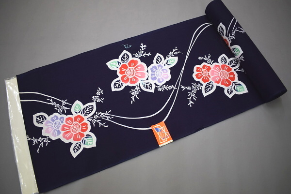 - A30-4【凛々】即決 新古品 本染 ゆかた反物 紺 花 未仕立て品