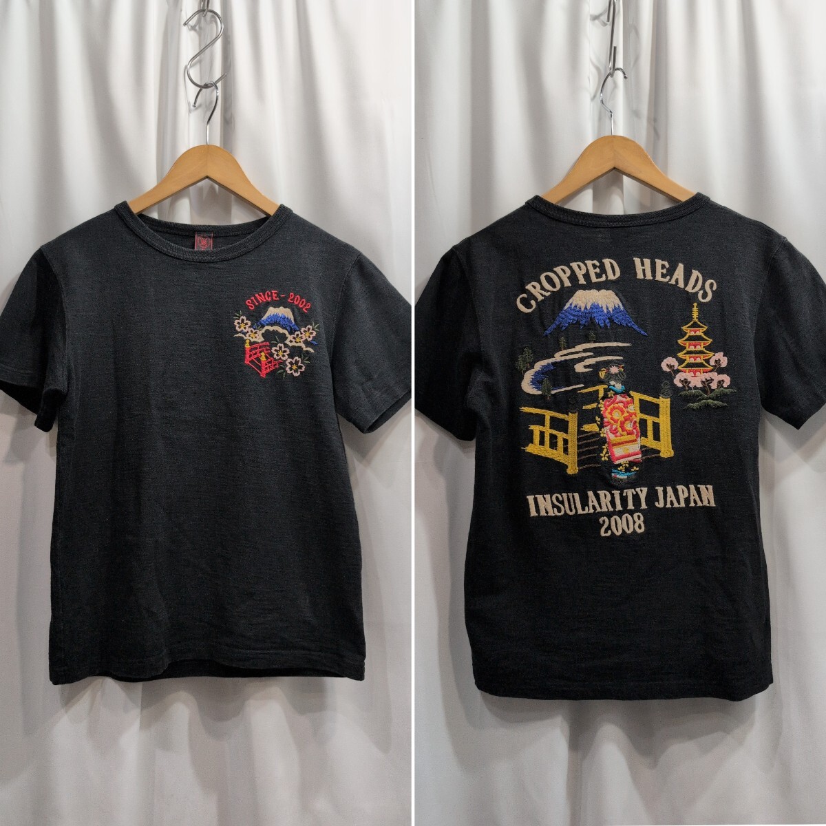 > クロップドヘッズ 舞妓 富士 和柄 刺繍 半袖 スカTシャツ S カットソー ブラック スカシャツ スカジャン/東洋/絡繰魂/抜刀娘/百花繚乱