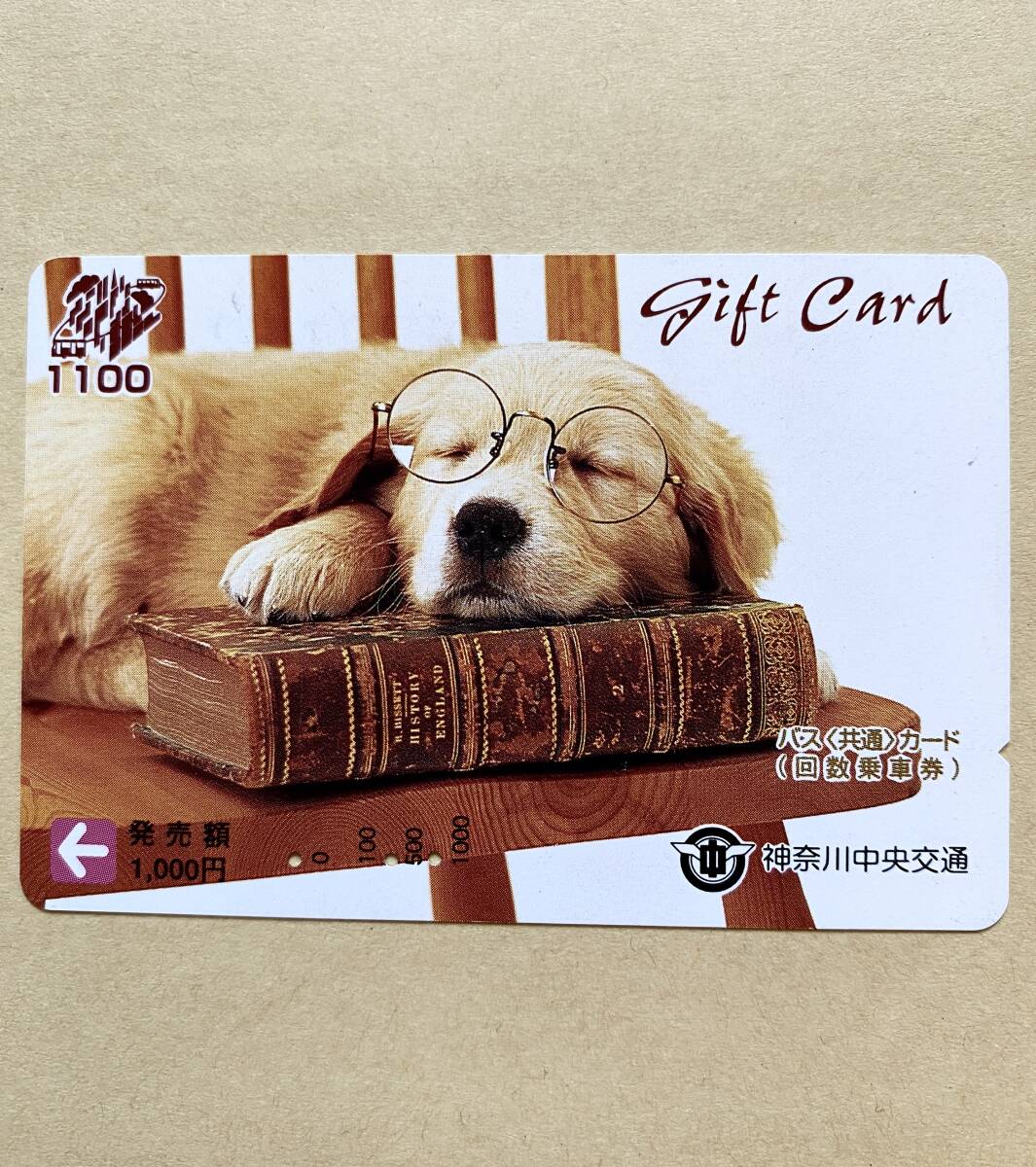 - 【使用済】 バスカード 神奈川中央交通 メガネをかけたままお昼寝中のゴールデンレトリバー 子犬